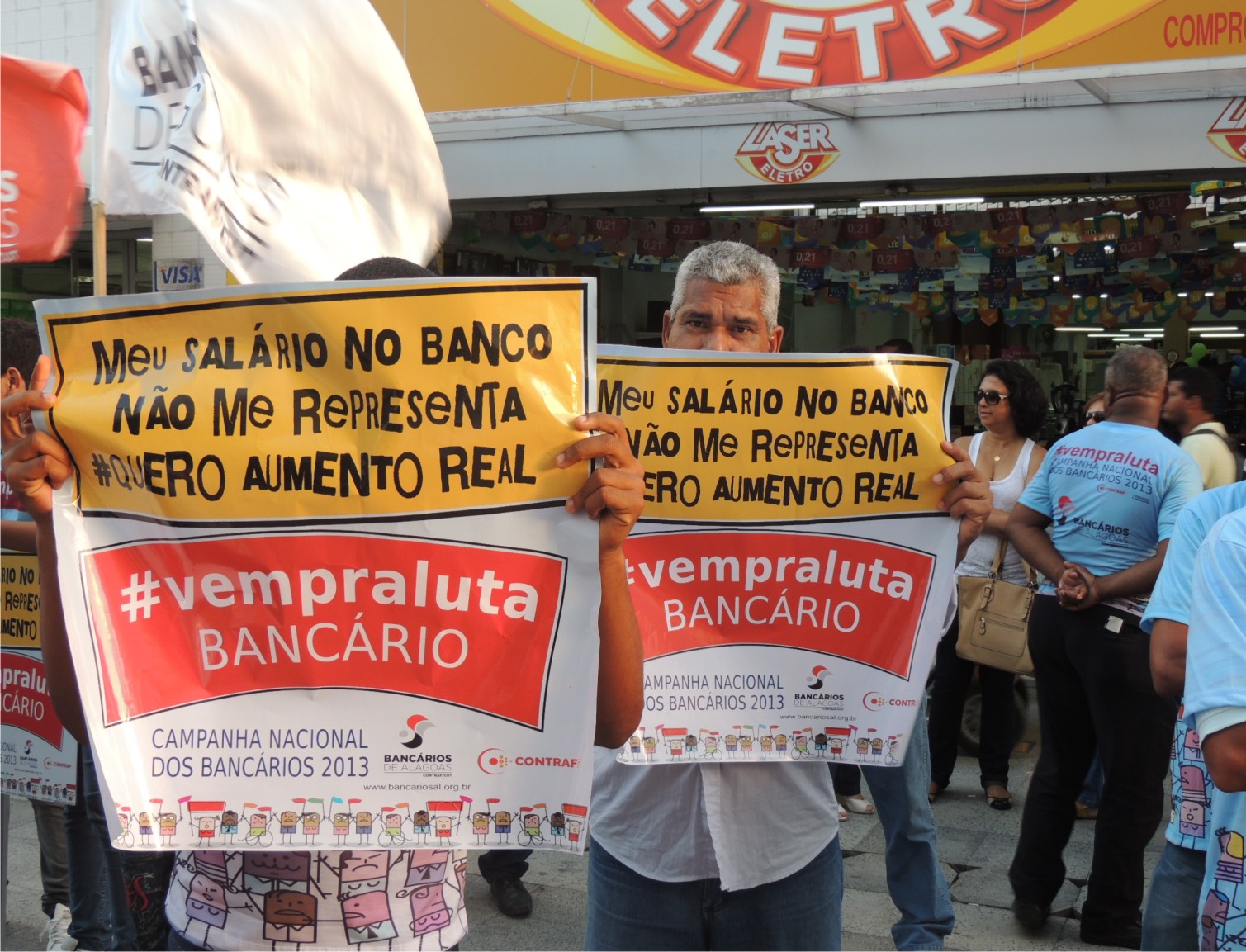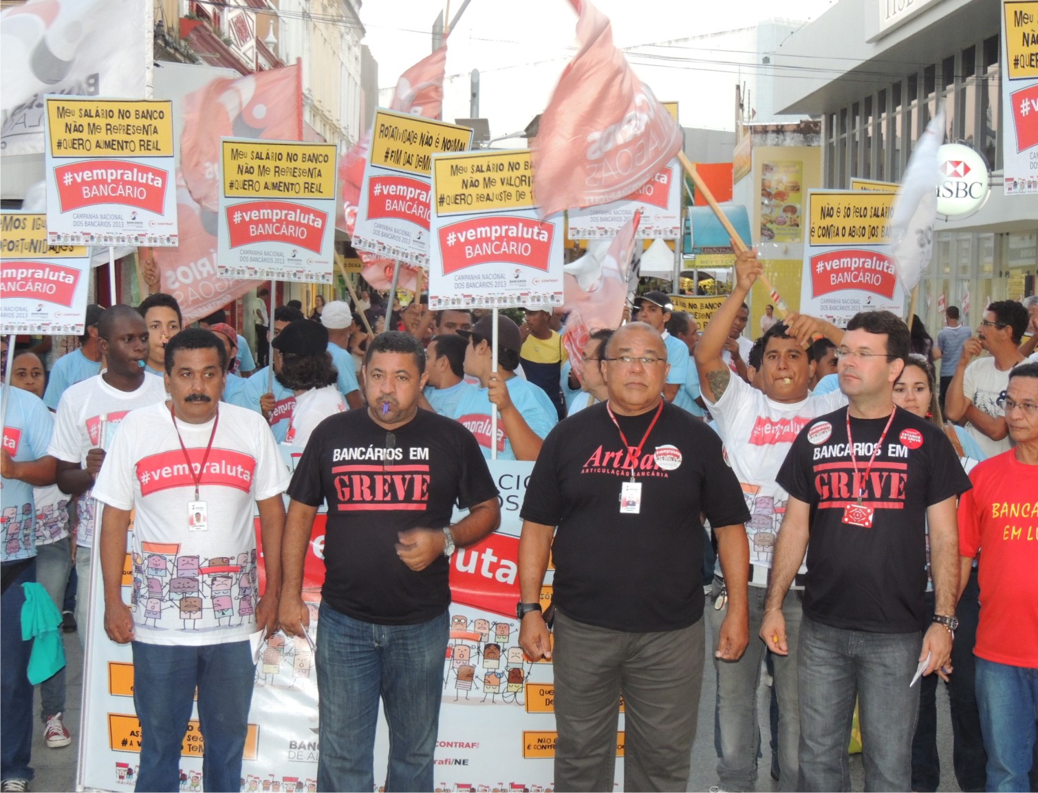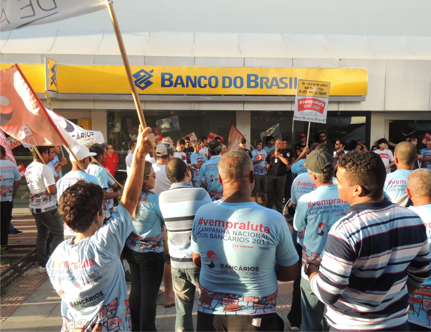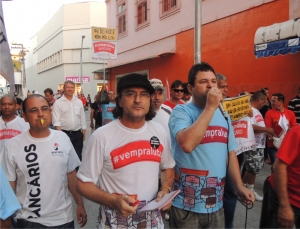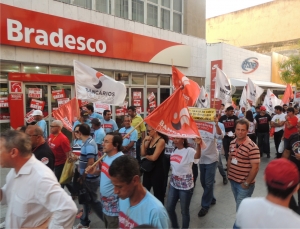 Protesto e passeata reforçam a greve dos bancários em Alagoas