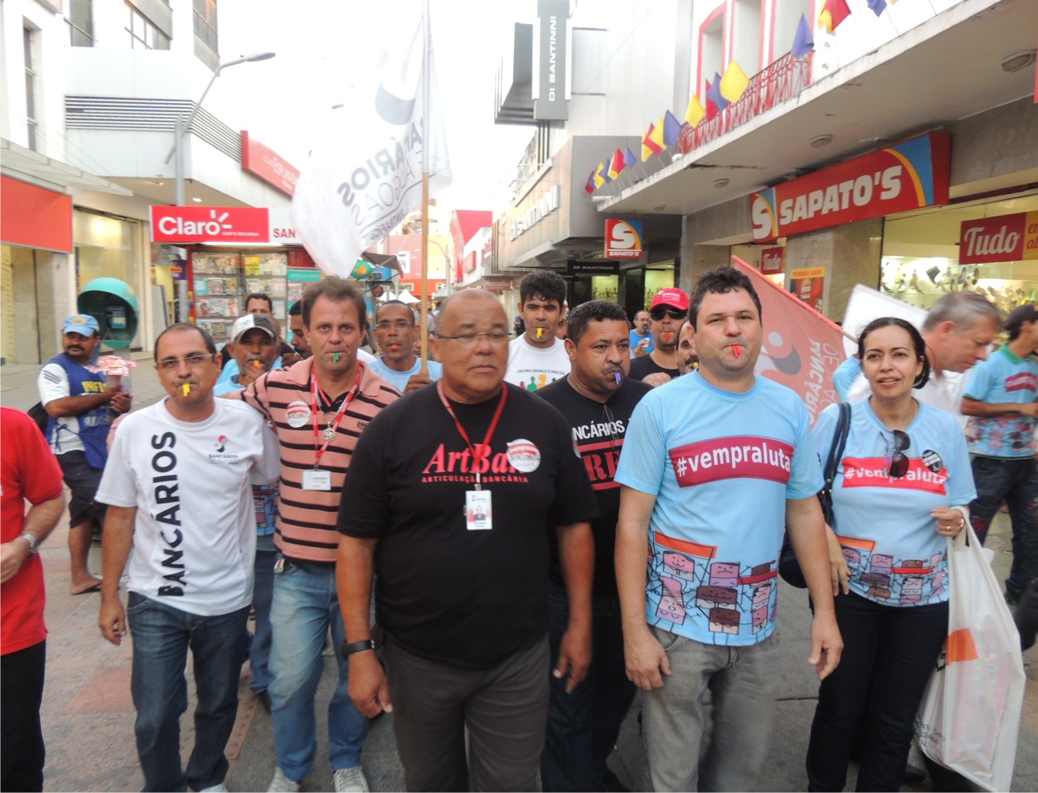 Após o ato em frente ao BB Livramento, os bancários saíram em passeata pelo calçadão do comércio.