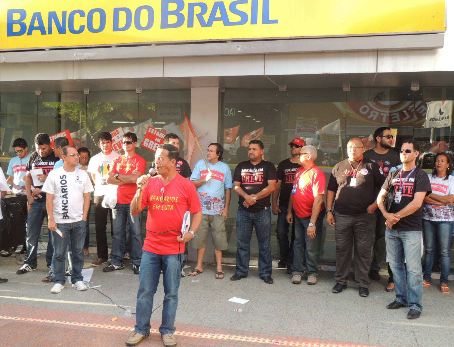O ato público de ontem aconteceu em frente ao Banco do Brasil da Rua do Livramento, onde funciona a superintendência do BB. No outro lado da rua está a principal agência do Bradesco em Maceió. Durante a manifestação, diretores do Sindicato fizeram vários pronunciamentos, além de distribuir uma carta com a população. A carta explica ao público os motivos pelos quais a categoria cruzou os braços, denunciando os banqueiros como responsáveis pela paralisação.