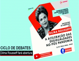 A ex-presidenta Dilma Rousseff é a convidada para o primeiro encontro, nesta terça-feira (13/07), a partir das 19h30, do Ciclo de Debates "Desenvolvimento, Novas Desigualdades e Justiça Fiscal no Brasil", que será composto por 10 encontros e contará com a contribuição de diversos especialistas.