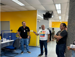 Durante a atividade, os diretores ouviram as demandas dos funcionários, debateram temas de interesse da categoria e distribuíram o espelho CASSI. A ação reafirma o compromisso da entidade com a defesa dos direitos e com a aproximação cotidiana junto à base.