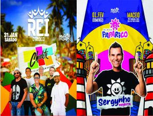 O Bloco do Rei será no dia 31/01 (sábado) e vai tomar conta das ruas com a energia contagiante do Chiclete com Banana. Já o Bloco Paparico, sairá no dia 01/02 (domingo), com Sergynho Pimenta como atração.