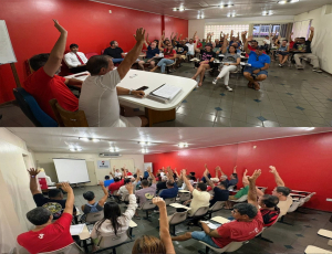 Durante a atividade, foram apresentados os dados financeiros, com esclarecimento de dúvidas e detalhamento das ações realizadas ao longo do último ano, evidenciando o papel do Sindicato na defesa dos direitos da categoria e na organização das lutas em Alagoas.